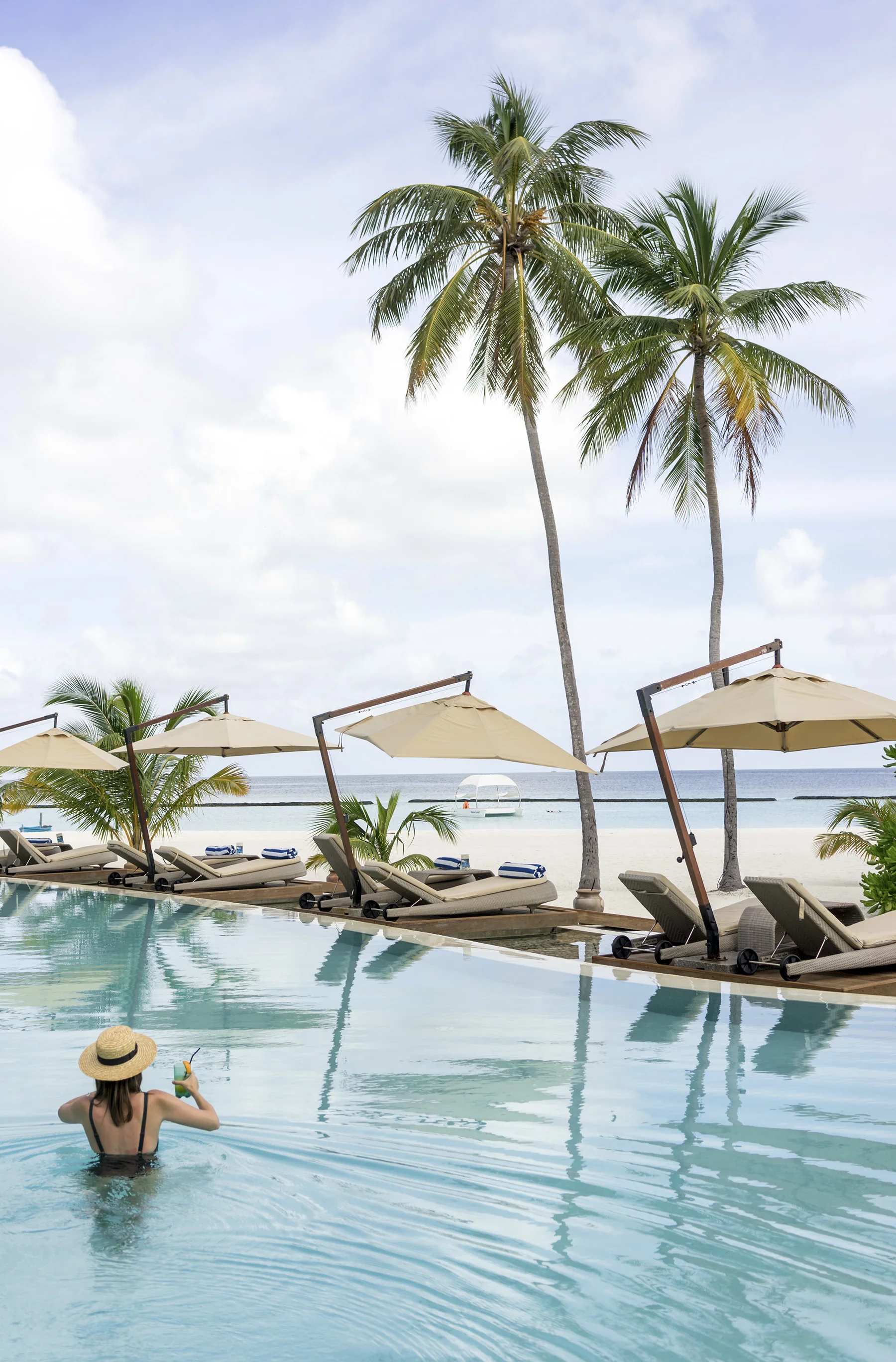 Bathing in one of the water villa's private infinity pool
