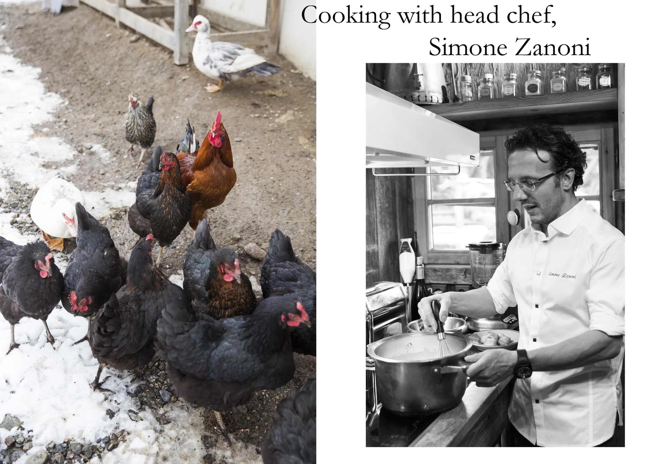 While a few went off to ski, a group of us were whisked off in our chariots to a near-by farm to taste local cheeses, bread and wine, and to cuddle baby lambs -yup, I think we got the good deal. While the others were freezing on the slopes (the weather conditions weren't ideal for skiing that day), we were warm and cosy inside, munching on cheese, bread, pumpkin soup and tasting various different wines. After a little tour of the farm, which made its own flour - a key ingredient for Simone's highly-anticipated pasta making course later that day, we headed back to the chalets to be kitted out with aprons and cook. An afternoon of cooking and warming up by the fire, was followed by champagne and cocktails, and then sitting down to dine on a delicious menu of chestnut soup, pumpkin filled tortellini, beef and panna cotta. After over-eating Italian-style - all ingredients were fresh, so I didn't feel the usual guilt at attempting to finish every dish, I wandered down to my chalet in a warm, fuzzy haze and drifted off to sleep.