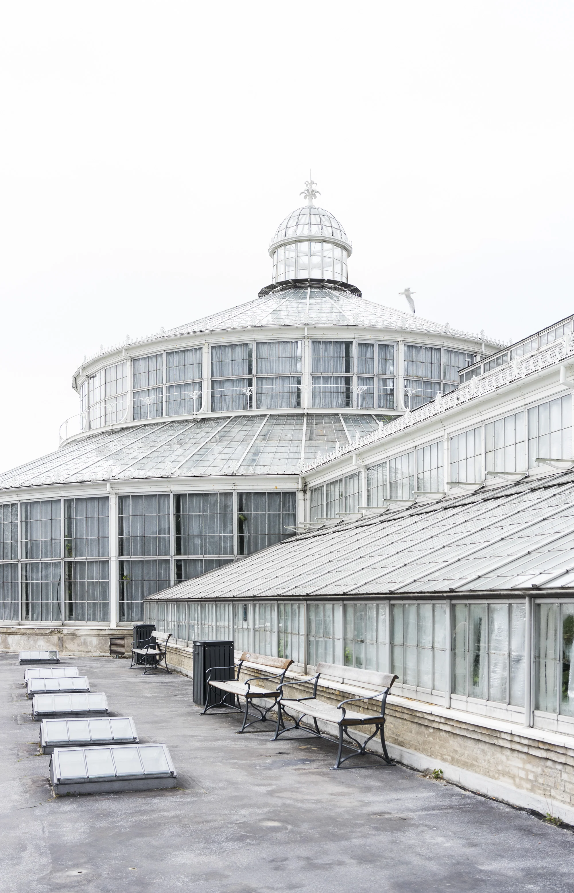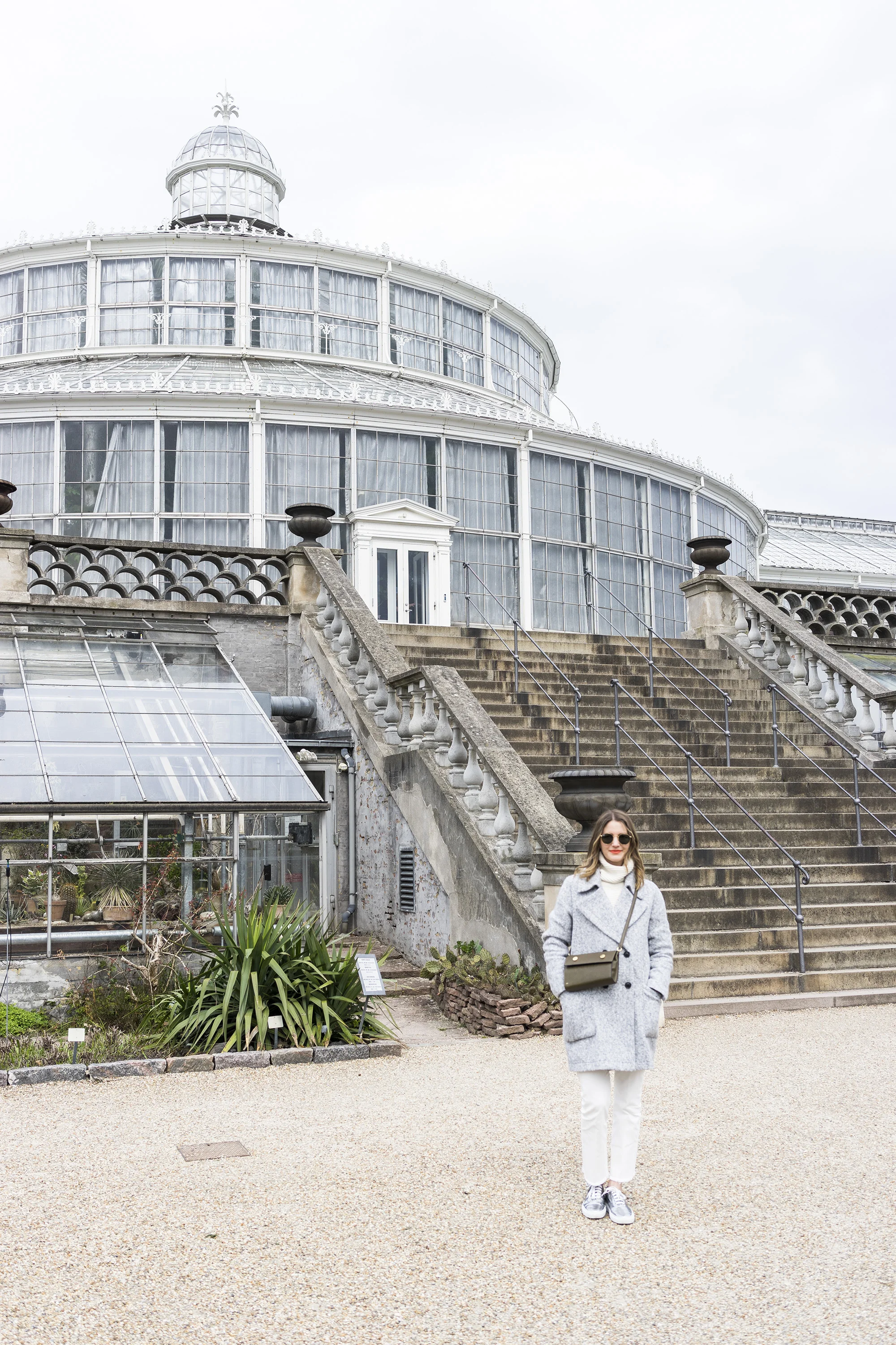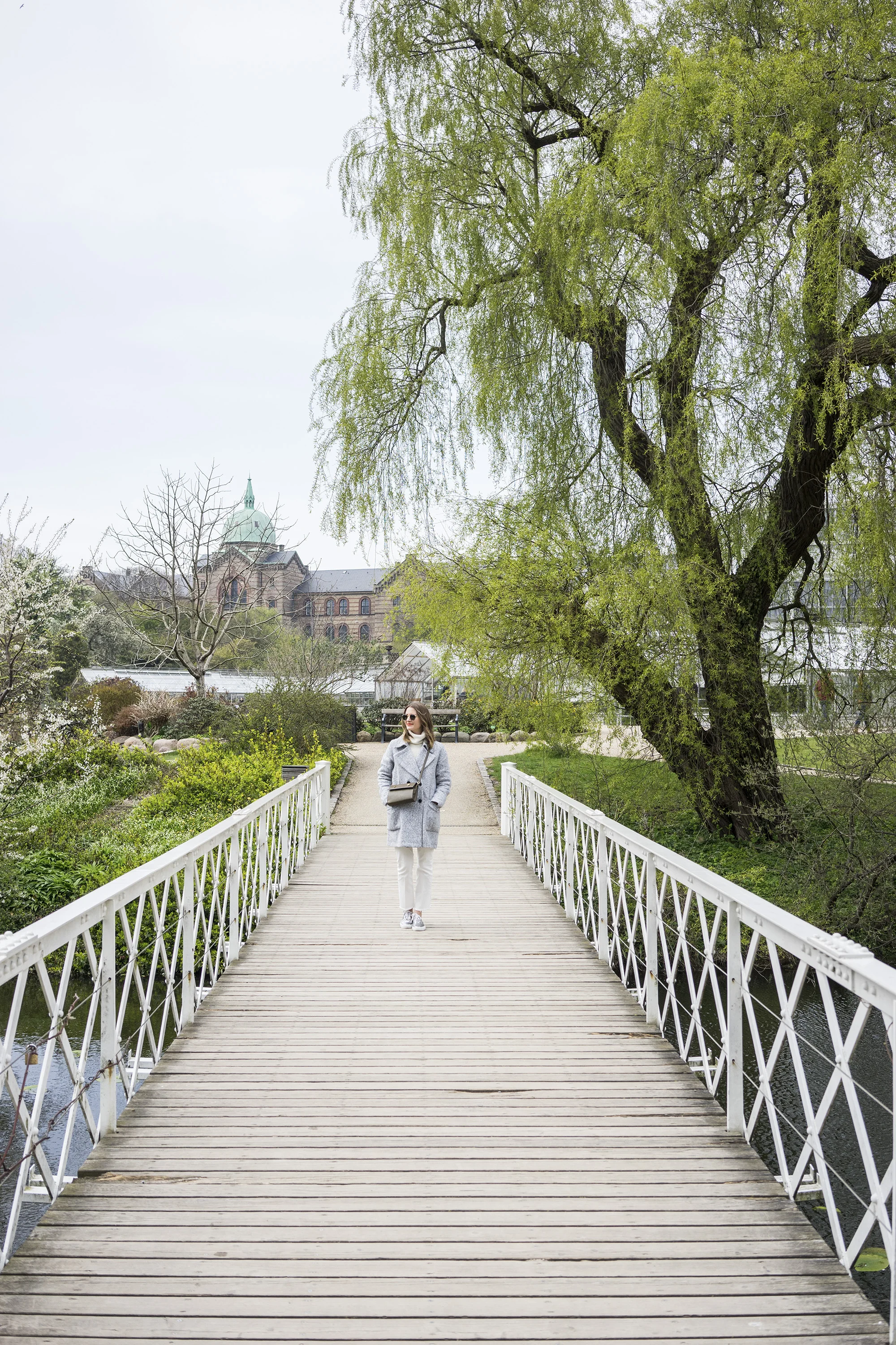 Botanisk Have went to the top of my must-visit list after seeing various snaps pop up on Instagram of a beautiful white iron staircase surrounded by lush green tropical plants, inside a giant domed greenhouse. Having arrived in Copenhagen the day before, to spend four glorious days frolicking around the city for my birthday, and to take as many photos as humanly possible (obviously the real reason for the trip!), we got up early on Saturday (post a boozy dinner at Höst the night before) to head off exploring. With the weather undecided between cloudy and cloudy with spurts of rain (not ideal for cycling), I decided that after a coffee at Atelier September, that now would be a good time to saunter over to the botanical gardens, to pose on the staircase amongst the foliage. Living on a busy boulevard in Paris, in the middle of the 10th arrondissement, doesn't afford much greenery, so exploring the botanical gardens was easily the closest I was going to come to the hanging gardens of Babylon for a while. Not meaning to colour-coordinate, I dressed in grey, white and green for the occasion and happily blended into my surroundings like a chameleon. Cue David Attenborough voice over and a million photos.