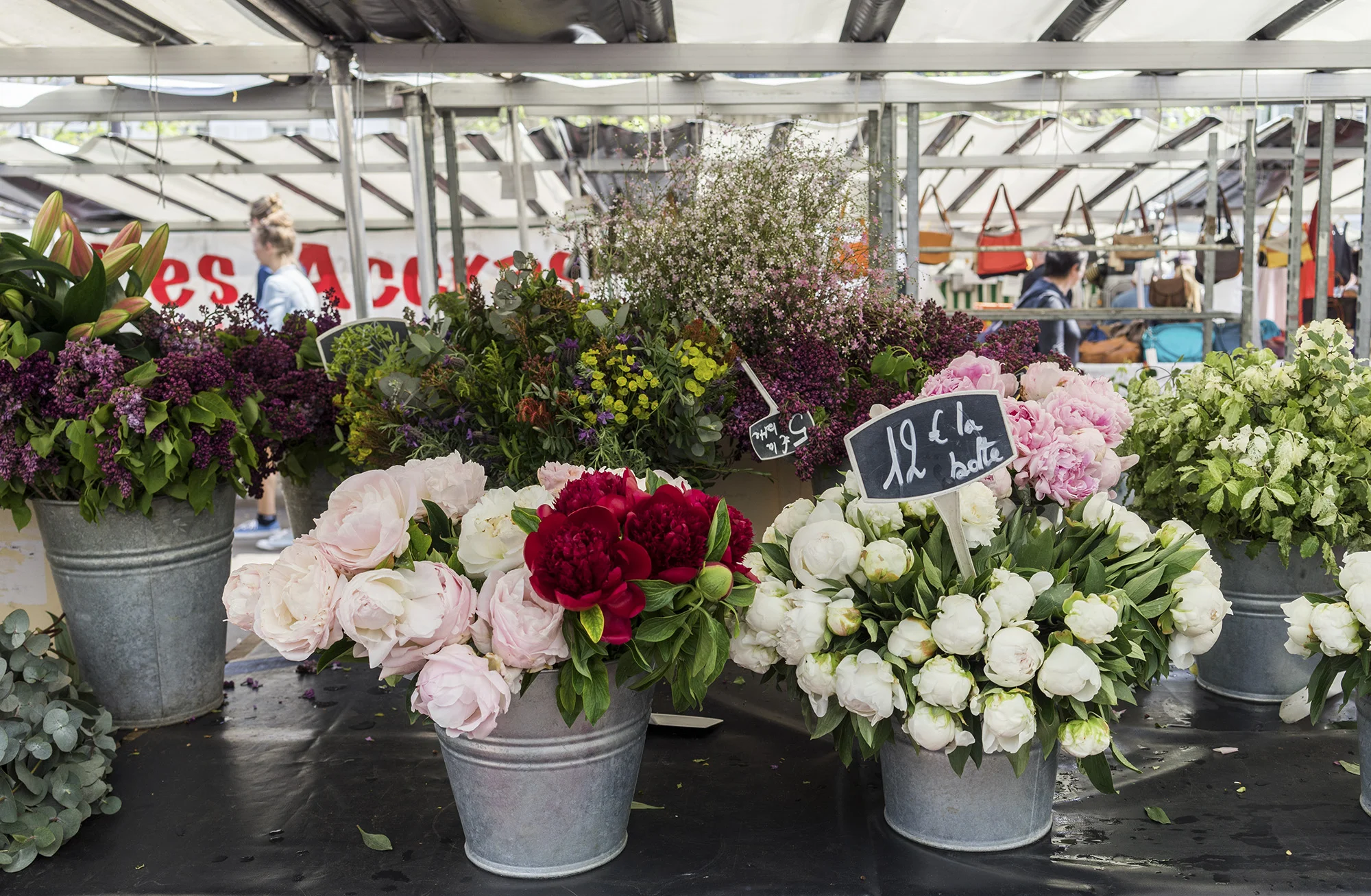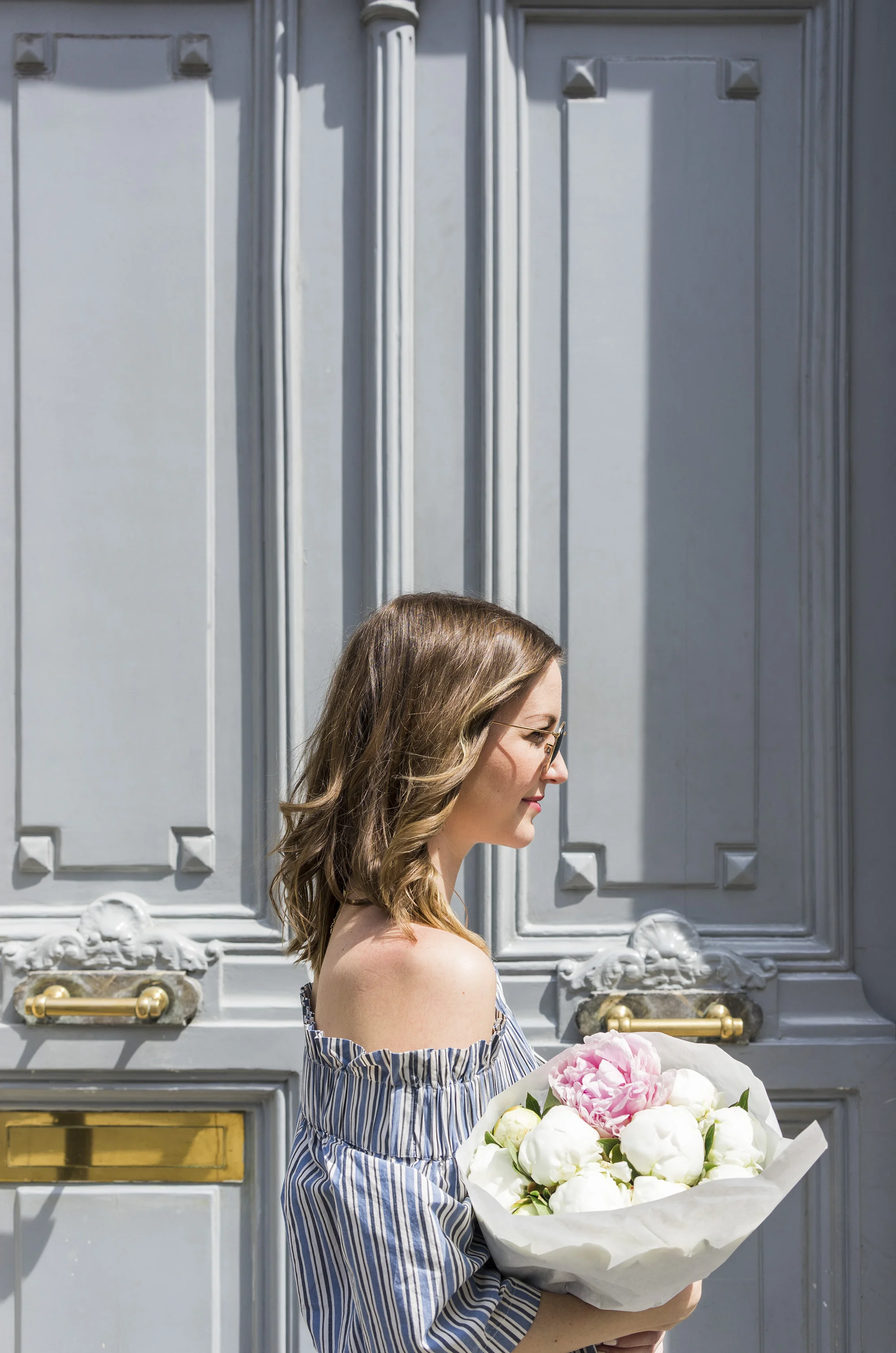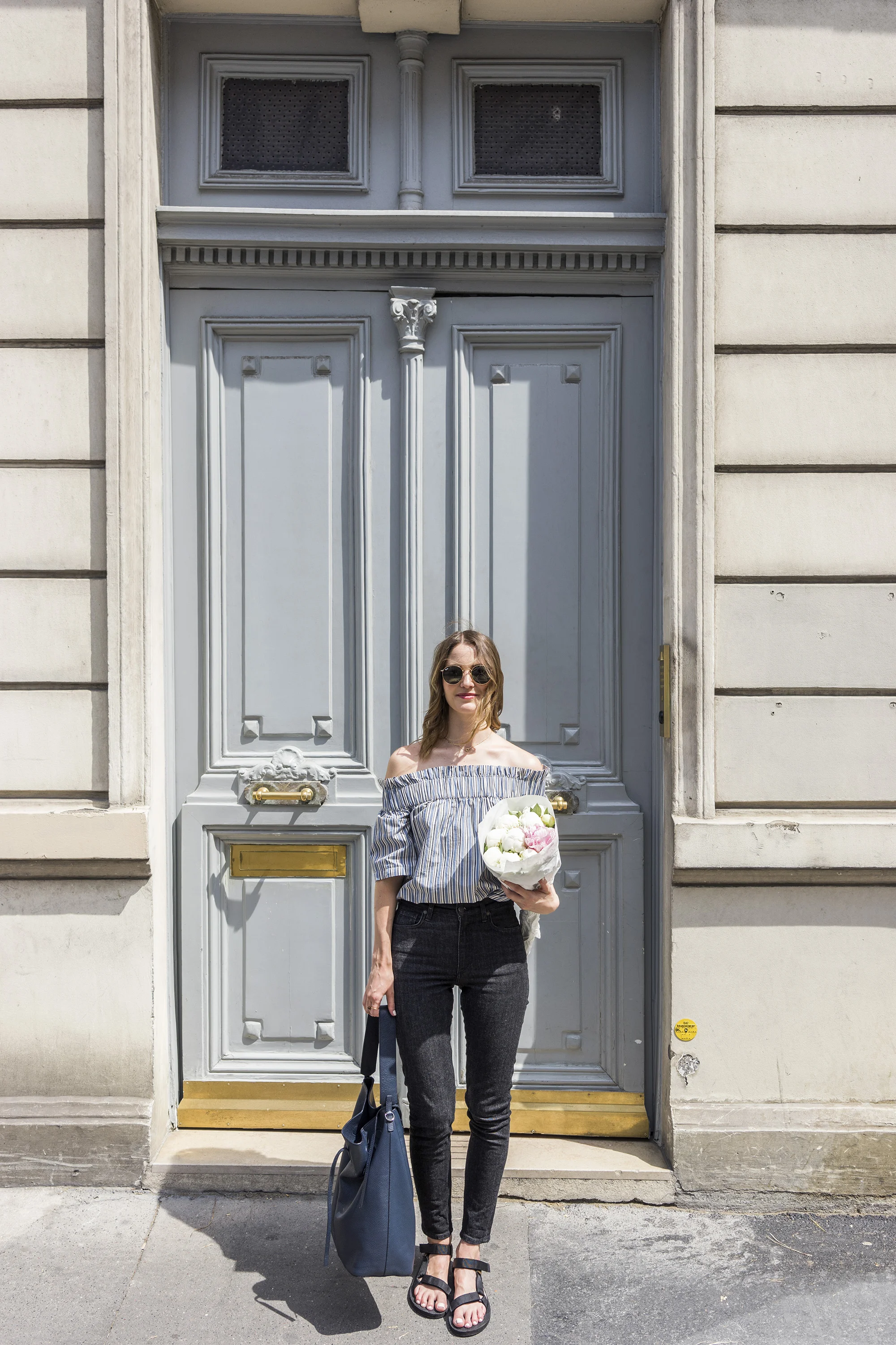 One of my favourite things to do when I'm home in France is go to the market (simple pleasures). Finally the weather and me being in Paris for the weekend convened, so this morning I donned my off-the-shoulder Ganni top (it's a little more than I'd usually pay, but great quality and actually stays off the shoulder, unlike most tops which seem to pop off every time I lift my arms) that I picked up in Copenhagen last week, my (self-labeled) ugly sandals, which I happen to love (hopefully I'm managing to pull them off and don't look like I'm about to go on a hike into the Amazon - although obviously I plan to wear them for that too!) and picked up a couple of Velibs (another favourite past-time) and cycled to the market at Bastille. There we ate oysters (there are a couple of stalls where you can get 6 for 6€ and a plastic cup of white wine for 2€ (the best kind of sunday lunch), followed by canelés, picked up the week's food shopping and bought that all-important bunch of flowers (white peonies!) for an Instagram photo (clearly the real reason for a market visit). You can see it all on my snapchat: marissacoxparis.