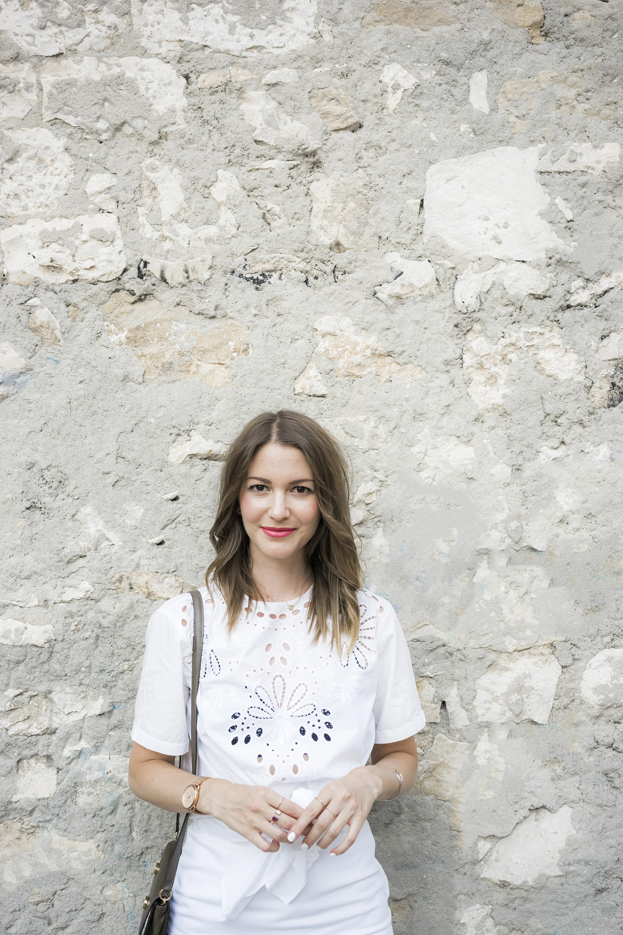 Zara white top / & Other Stories white denim skirt, similar here & here / RSVP Paris leather bag / Fossil Watch / Harvey Nichols leather espadrille sandals