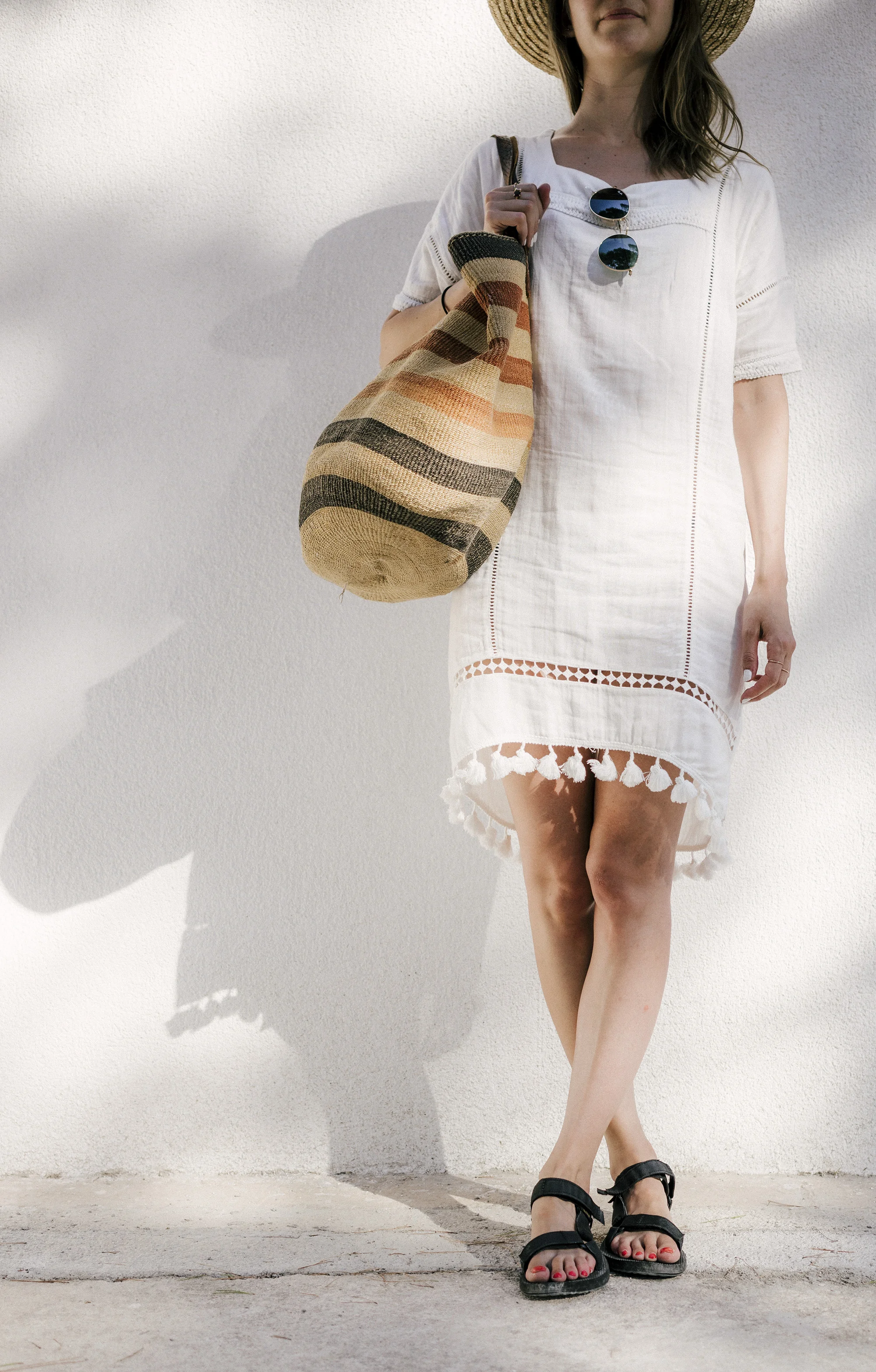 I'm wearing an ASOS dress, similar here and here / Tevas / vintage bag from Kenya / Ray Bans / Lack of Color hat