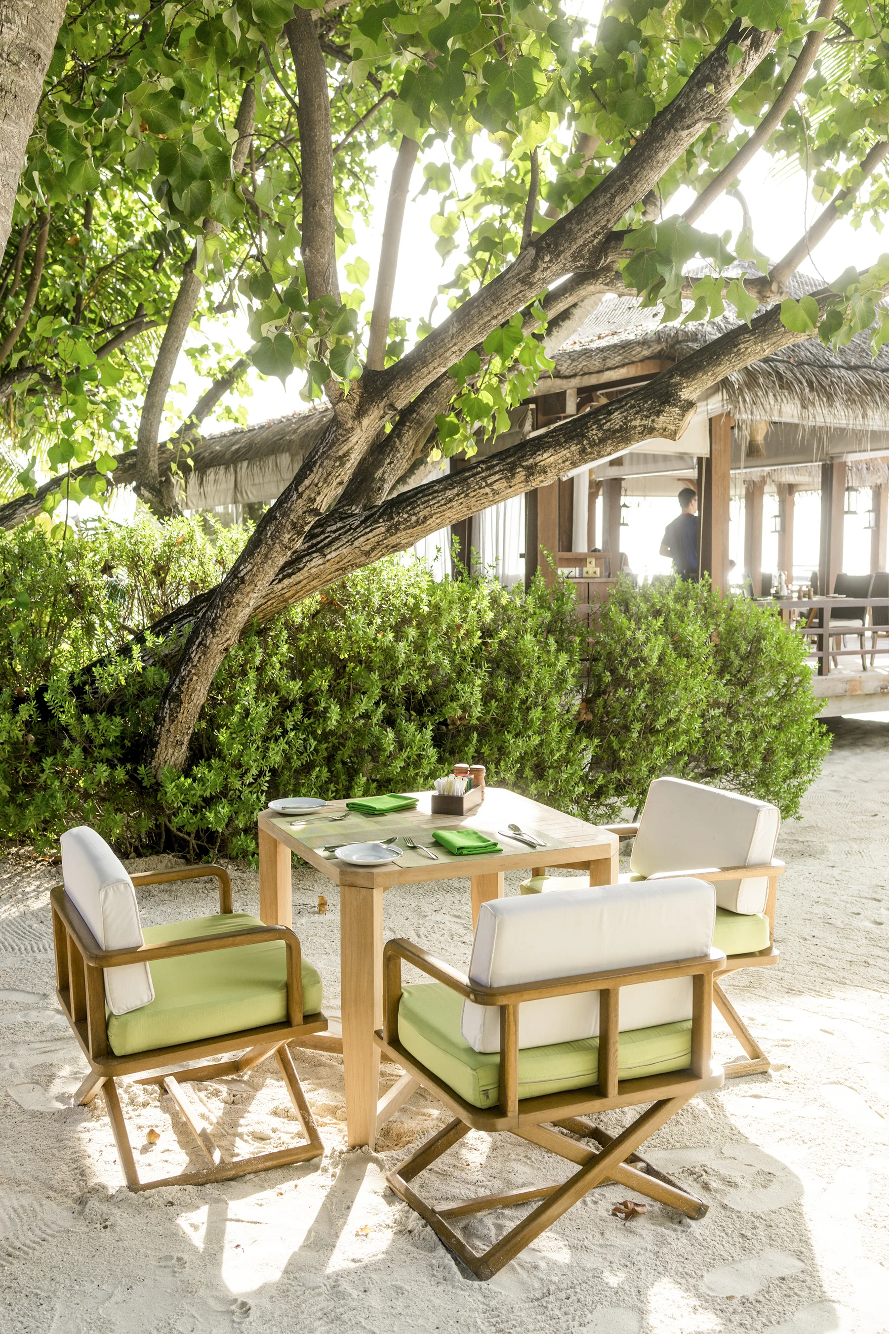The spa - each hut is a massage room with peep whole to the sea, so you can relax and watch the fish swim by.