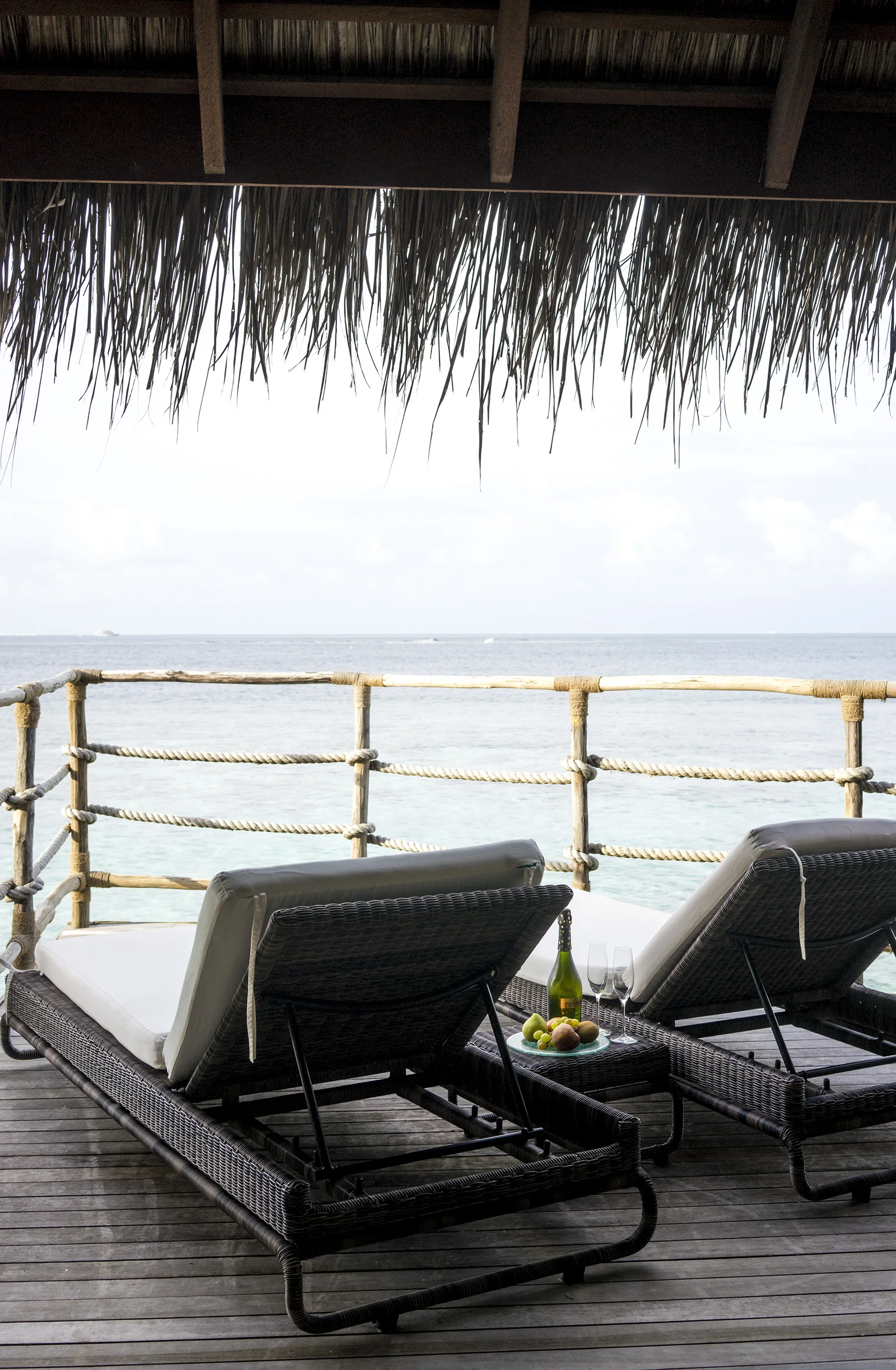 The first destination of our four day foray in the Maldives, was the brilliantly-named Moofushi Resort, otherwise known as 'the jewel island' to the locals. I stepped off the seaplane and straight into the warm welcome of the staff and assistant resort manager, Srikanth. Having not slept (I’m not really a plane sleeper and I can’t resist watching the films, much to my own detriment), I was pretty dazed and practically running on empty, but anticipation, excitement and curiosity gave me enough fuel to see me through the rest of the day. Unfortunately the weather, although warm and humid, was a bit rainy and grey, but thankfully it didn’t mar the beauty of this incredible place, just prevented me from taking copious amounts of photos and forcing me to live in the moment. No bad thing, when I often see the world through a lens.
