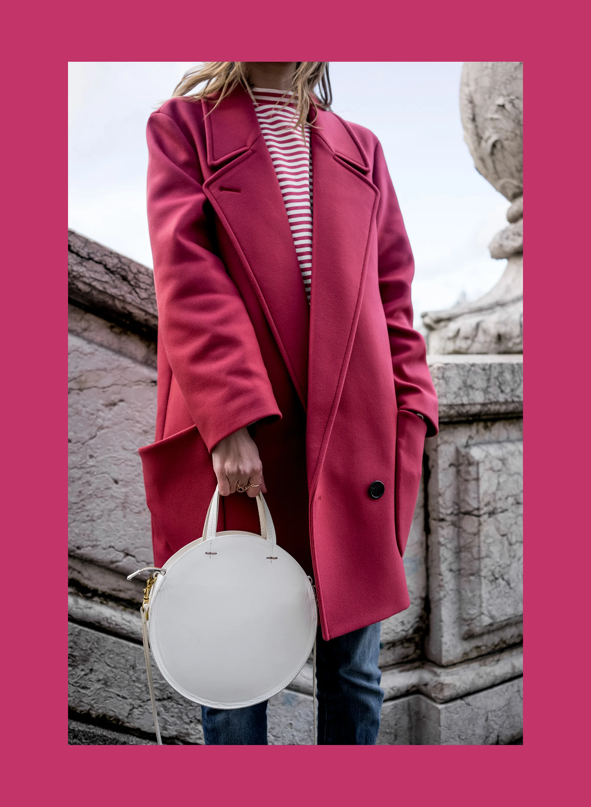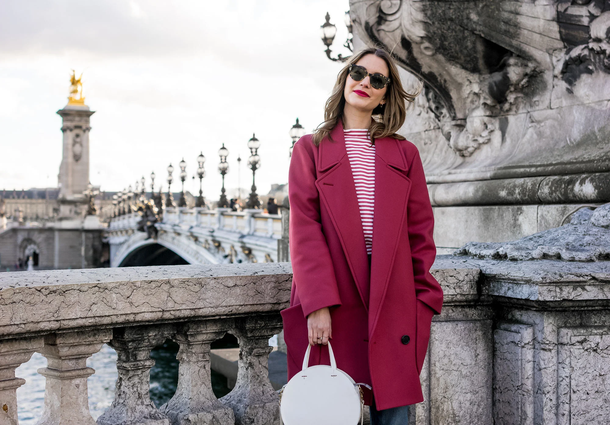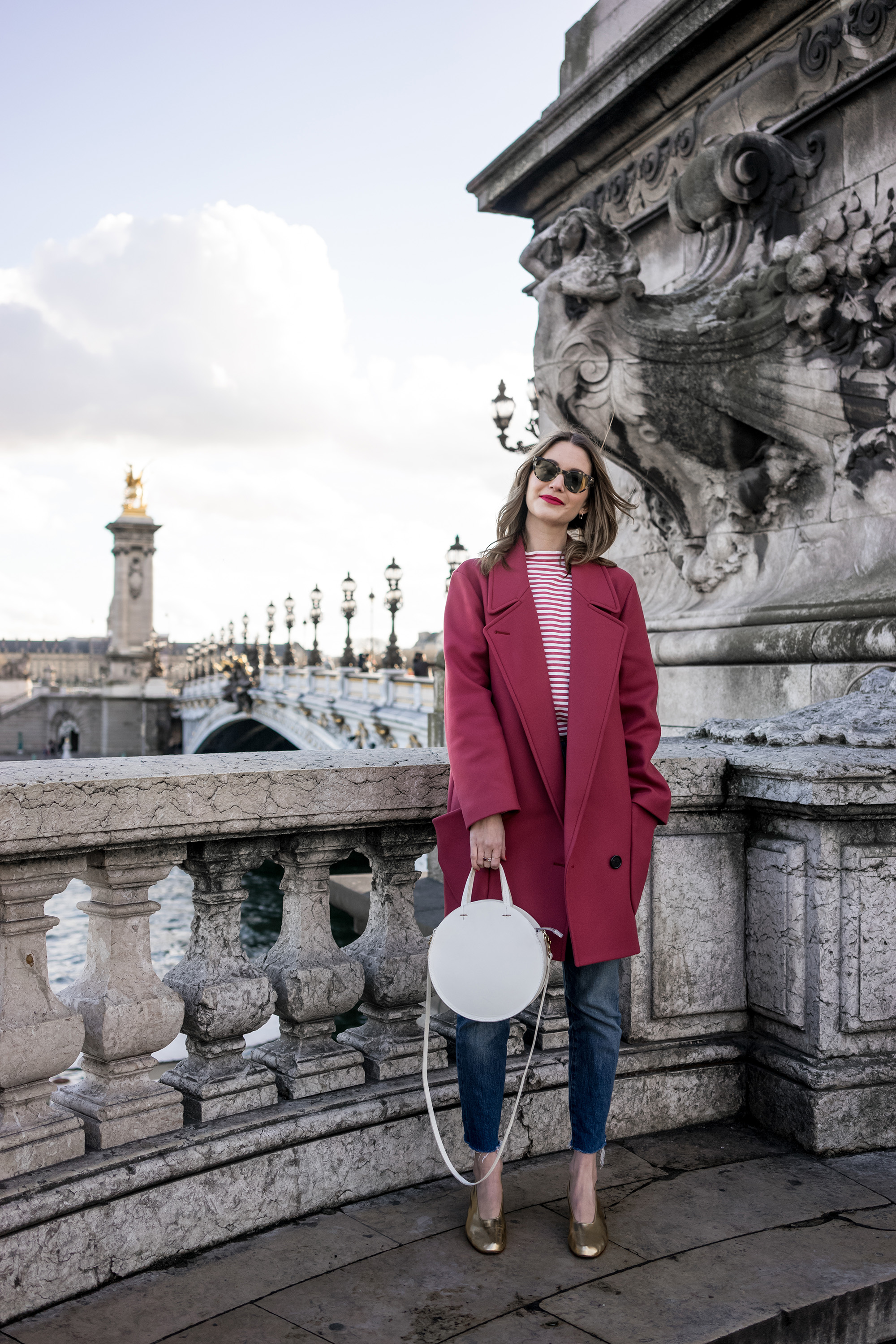 I'm wearing: Chalayan Coat, similar here and here / Garrett Leight Sunglasses / Levis Jeans / Martiniano Shoes, similar here and here / Clare V round leather bag, similar here / MIH Jeans Breton Striped Top