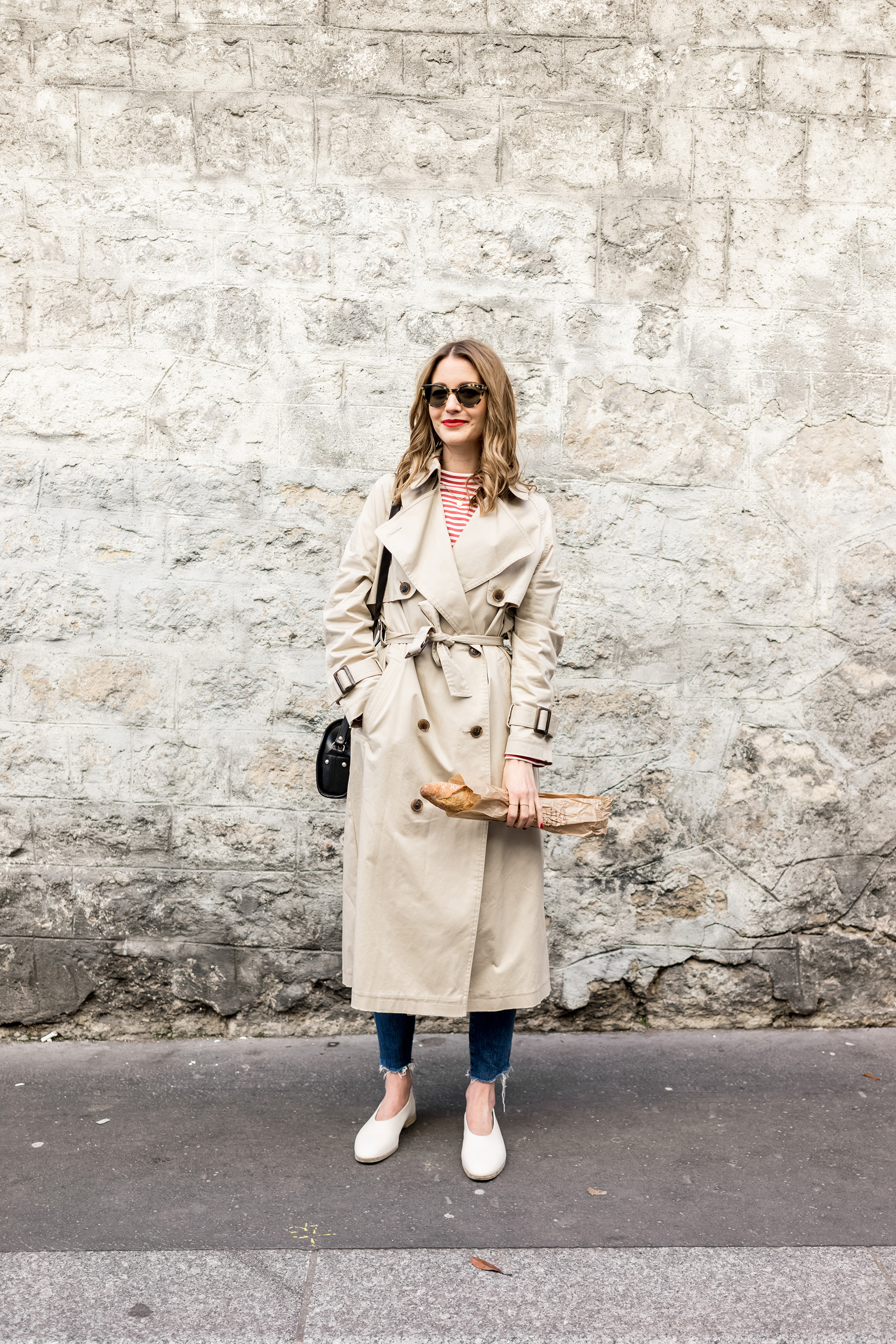 I've held off writing a post like this as I've always thought it a little clichéd. Yet the fascination with the way French women dress (and what they eat, how they rear their children and look after their skin…) continues to endure. So I put on my new favourite top, donned a trench and bought a baguette! (Because no French cliché is complete without one.) And what with Paris Fashion Week a few days behind us, I thought there was no better time than now to address a style that I’ve become more accustomed to wearing. This particular outfit is what I want to be wearing when Spring finally shows up. I’ve already worn a variation of it which you might have seen already, if you follow me on Instagram.