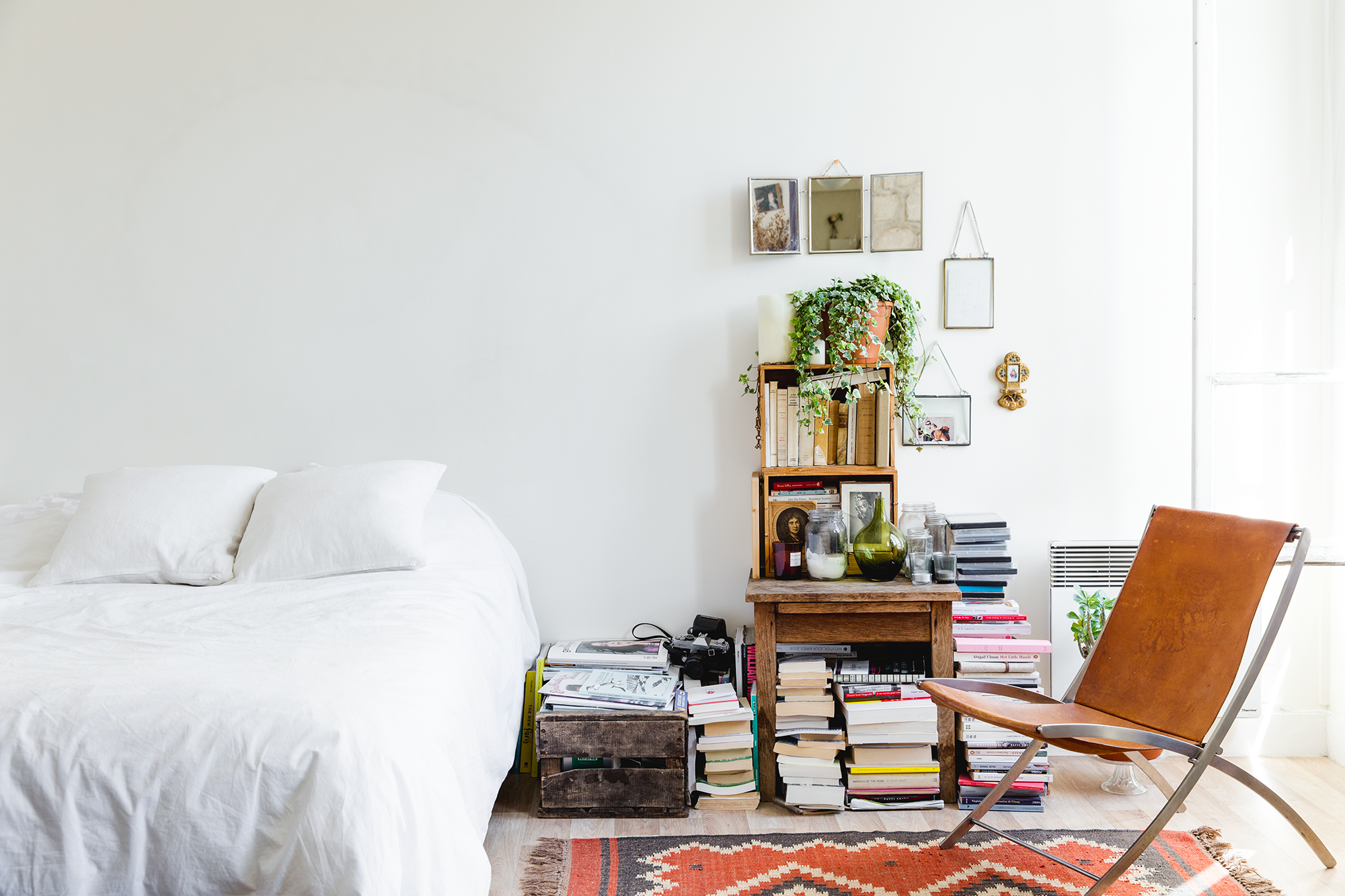 The half French, half Irish, native Parisian has been working for Pinterest for the past 3.5 years as their Marketing Manager for France. Given her nature and working for the visuals-driven social media giant, I assumed she would have - in Pinterest speak - a unique 'pinnable' apartment. Luckily I was proved right. Her 5th floor Marais apartment is small, with a pint-sized kitchen, but perfectly formed. Light floods in through the windows in the living room-cum-bedroom and it's beautifully decorated with a mix of vintage furniture, trinkets from her travels, old photos, illustrations of fish (which she has a thing for - her uncle was a marine biologist and she thinks she picked up her interest from him), old mirrors, books, magazines and candles.