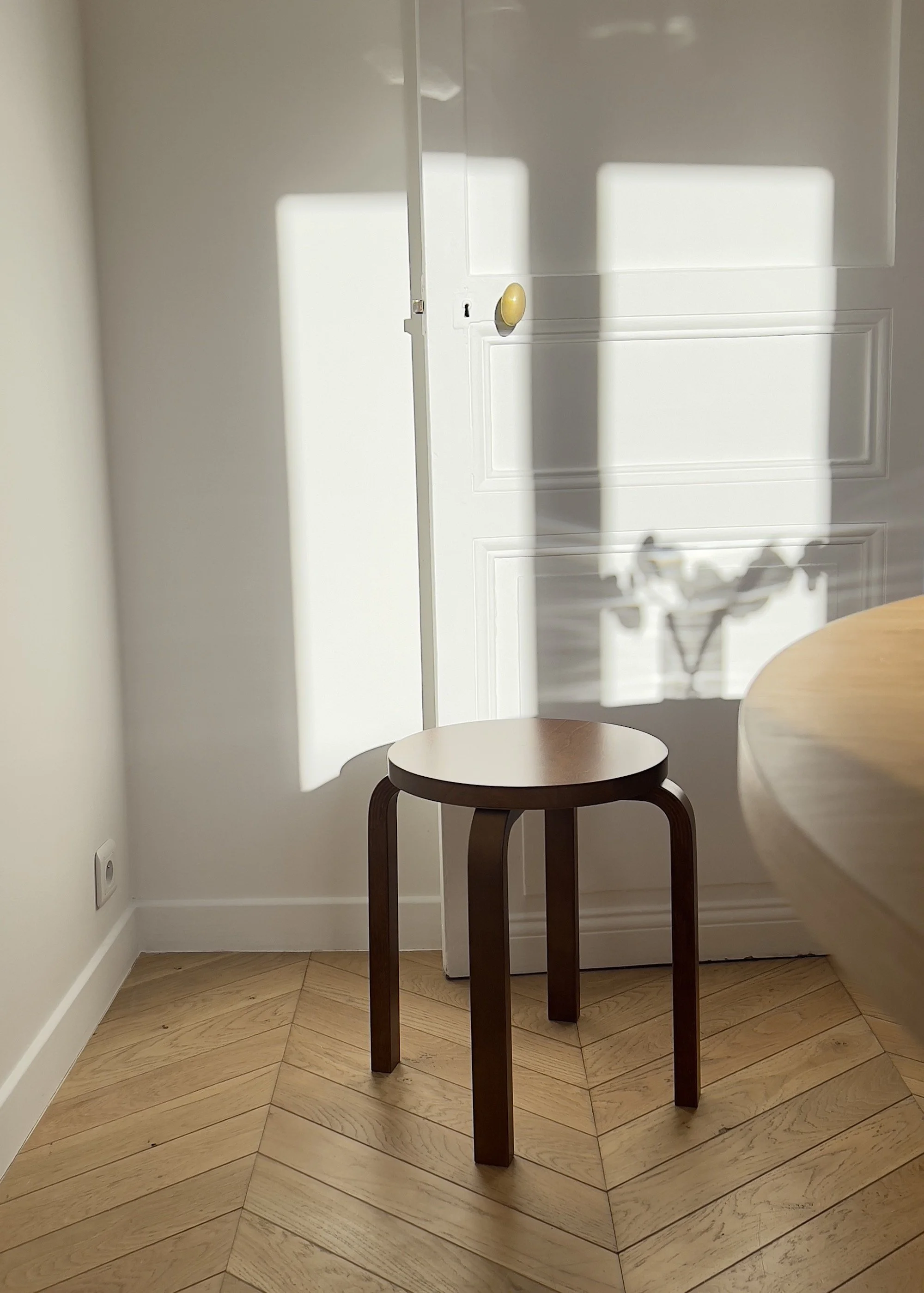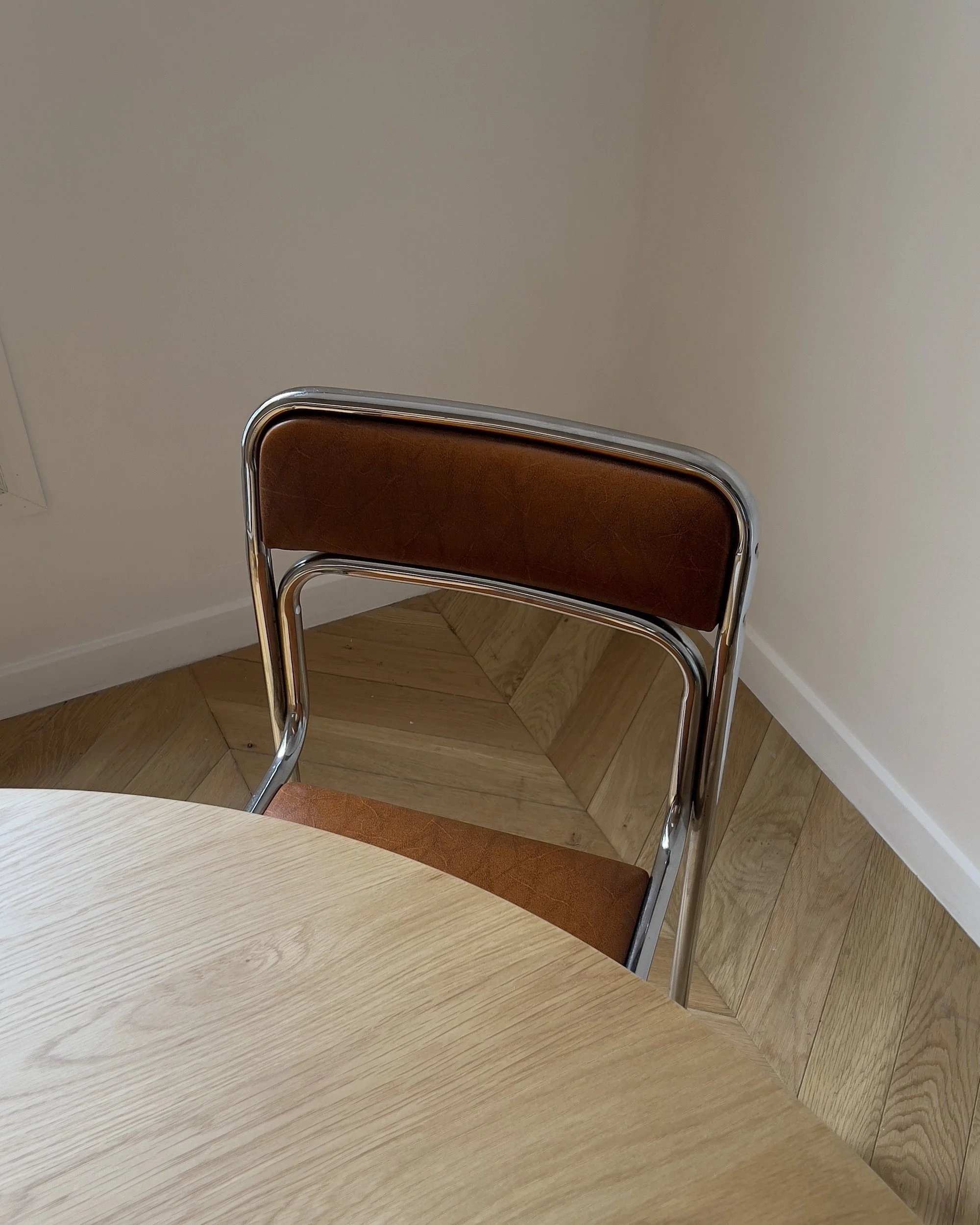 Her defined sense of personal style unsurprisingly spills into her living space, which is clean, minimal and with little pops of color. Her home aesthetic focuses on key vintage pieces (sourced via Selency), and exudes the same natural elegance that comes across in her outfits.