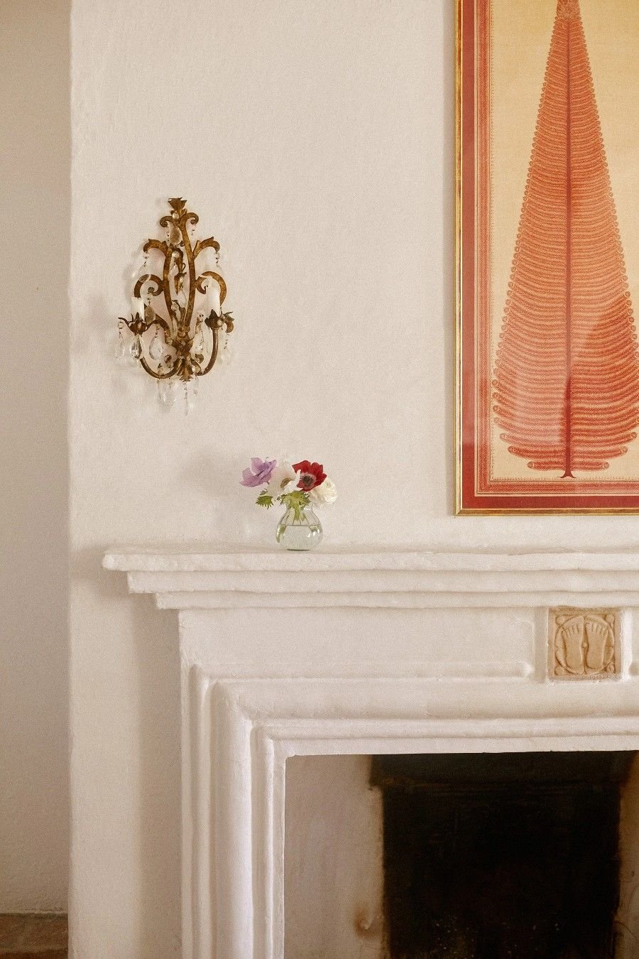 While Jasper oversaw the garden plans, Camilla turned her attention to the interior. She began the renovations with the essentials: she had the original stone and tile floors repaired throughout the house, she had utilities added, she had the walls white-washed, and she had fireplaces built in for heat. She outfitted the kitchen, keeping the design simple and true-to-form for a Tuscan farmhouse. Wide open shelving was hung the length of the wall over the
